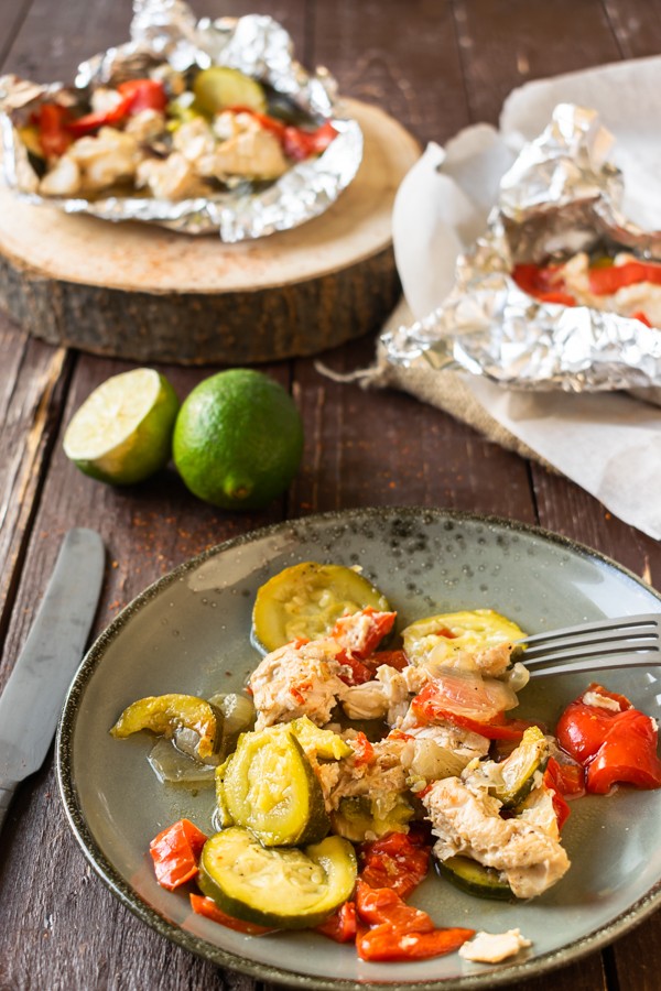 Cooking the veggies and chicken together in the packet enables all the spices and marinade ingredients to mingle together, cooking directly onto the food. When you grill without foil, marinades tend to drip down onto the hot coals below, causing you to lose flavor. Not the case in this recipe! The delicious taste of fresh lime juice, chili powder, cumin, garlic, onion, and cayenne will be seared right into the chicken and vegetables- not even one drop of flavor lost!